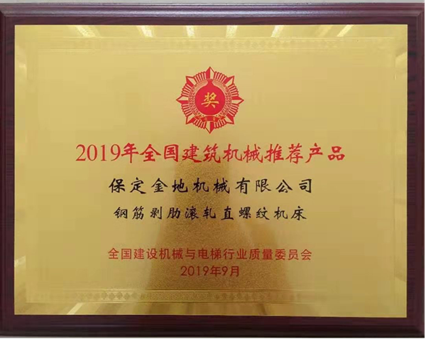 25日晚上全國建設(shè)機(jī)械與電梯行業(yè)質(zhì)量委員會(huì)在無錫太湖國際博覽中心旁君來世尊酒店舉辦了“2019年建機(jī)推薦頒獎(jiǎng)典禮暨中外客商迎賓晚宴”。我公司的主營產(chǎn)品鋼筋剝肋滾軋直螺紋機(jī)床喜提“2019年全國建筑機(jī)械推薦產(chǎn)品”,“金地”品牌又一次用高品質(zhì)產(chǎn)品獲得大家的認(rèn)可!